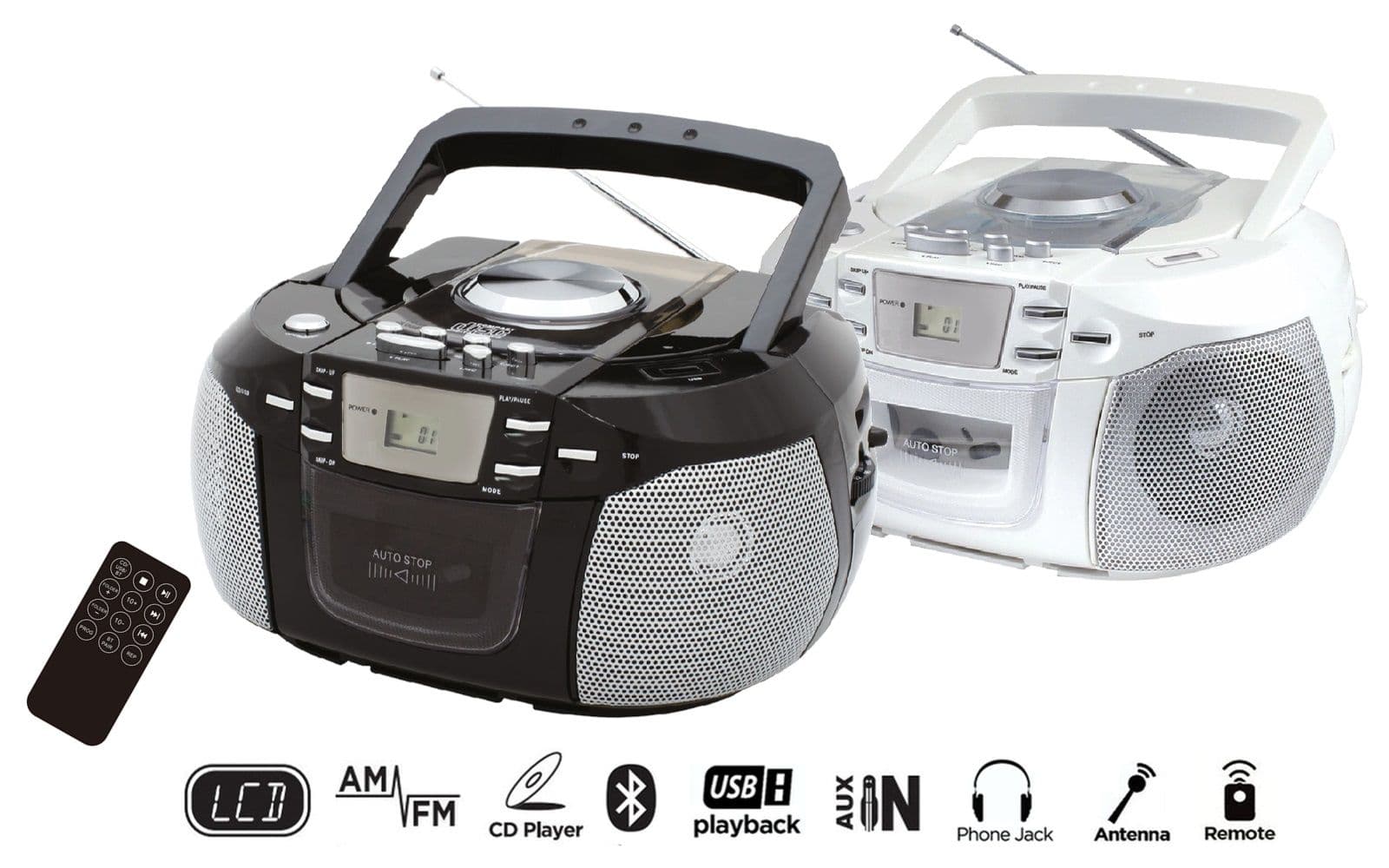 CD Boombox with Cassette Recorder, Bluetooth and USB playback