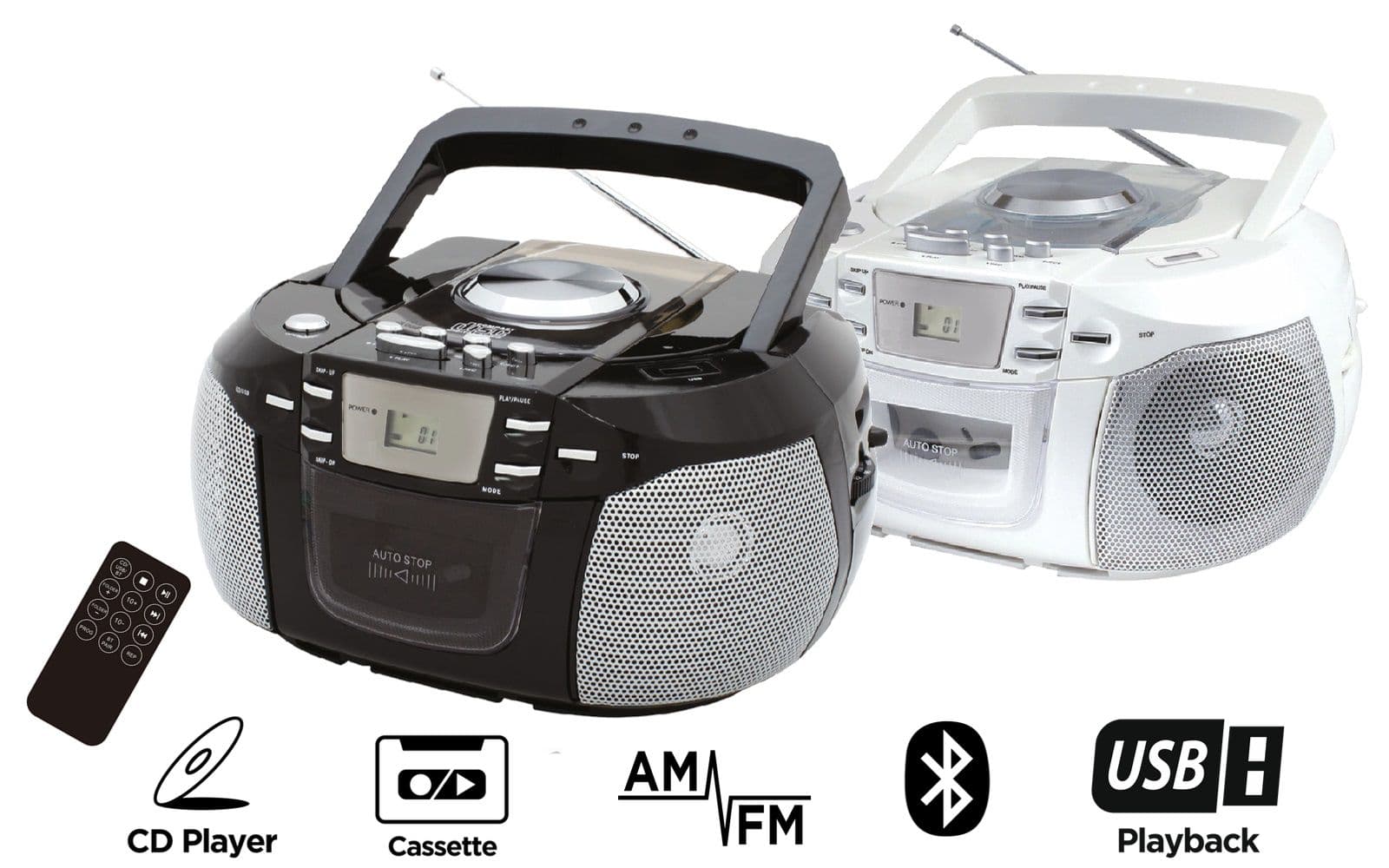 CD Boombox with Cassette Recorder, Bluetooth and USB playback