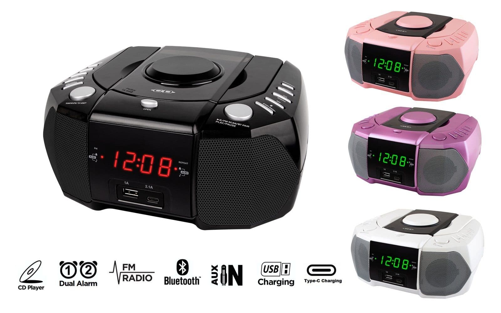 CD Alarm Clock Radio with Bluetooth, USB Type A charging and Type C Quick charging